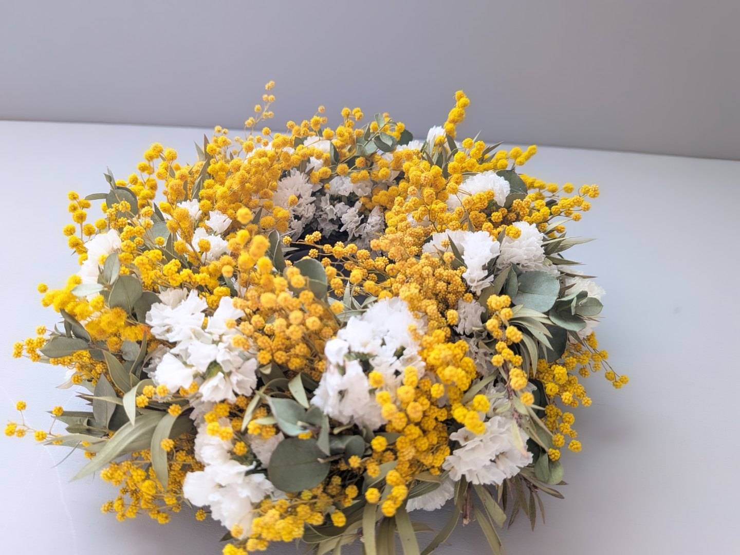 ふわふわのミモザのいい状態のときに乾燥させ、
